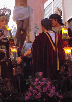 - Paso del Cristo: Representa a Jesús muerto en la Cruz con la compañía de San Juan, María Magdalena, Nuestra Señora del Consuelo y Longino.